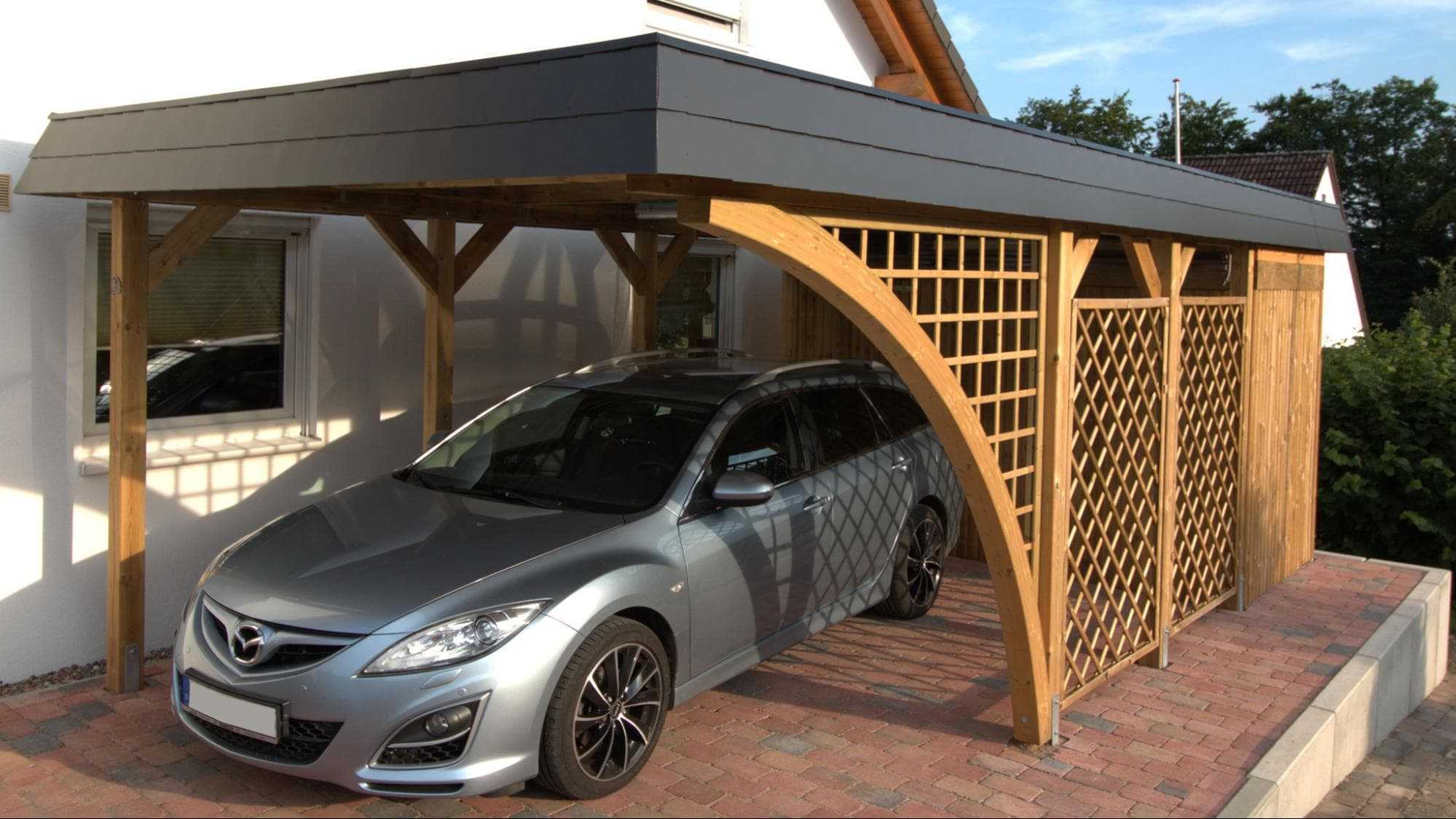 Навесы для машины, пристроенные к дому: фото