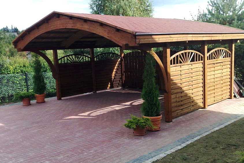 Просторный и прочный навес из дерева