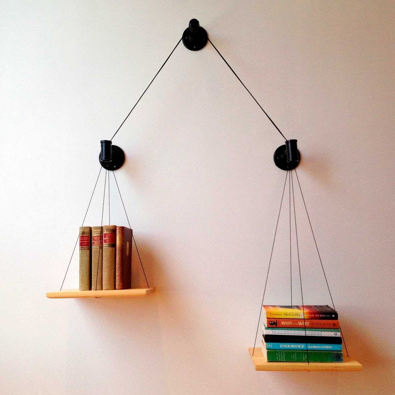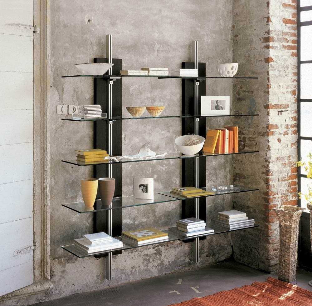 Пожалуй, наиболее распространенный вариант размещения книг. Используя различные фиксирующие элементы, конструкция подвешивается на стену. Это позволяет освободить много места в комнате, которое может быть использовано для других целей.