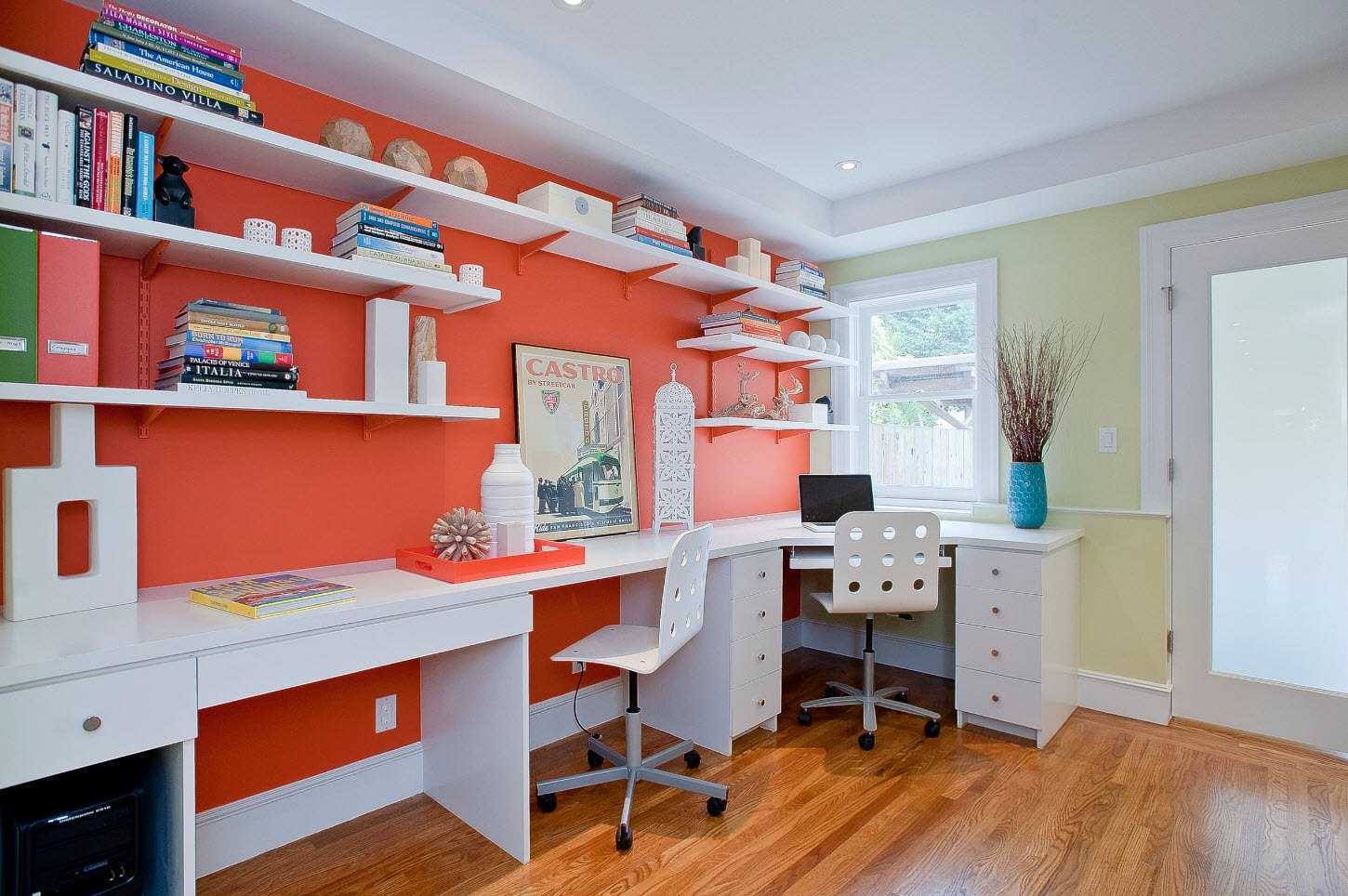 Обильное наполнение полок — вот, что будет создавать дизайн рабочего места Кроме материала изготовления различаются они и по форме: