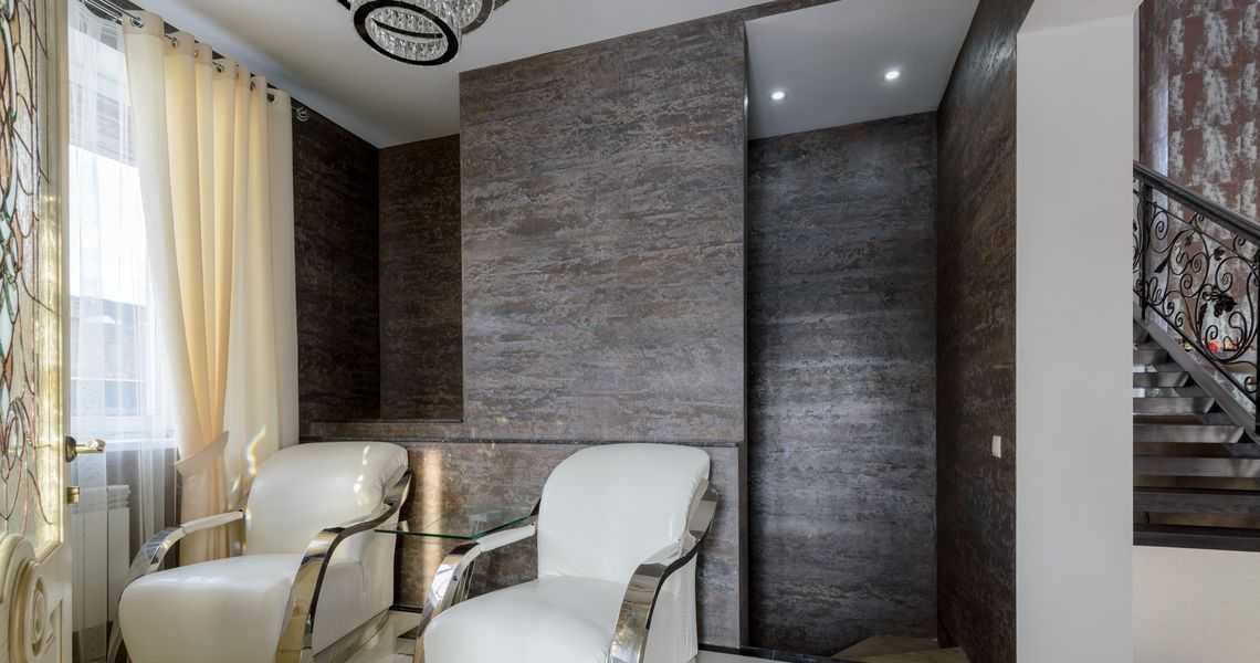 В интерьере внутренних помещений используют и то, и другое. С микроцементом хорошо получится гладкая бетонная стена. Рельеф ей придаётся уже во время оштукатуривания с помощью разных инструментов – грубые мазки, либо наоборот, чёткий орнамент. Микробетон имеет интересную зернистую структуру сам по себе.
