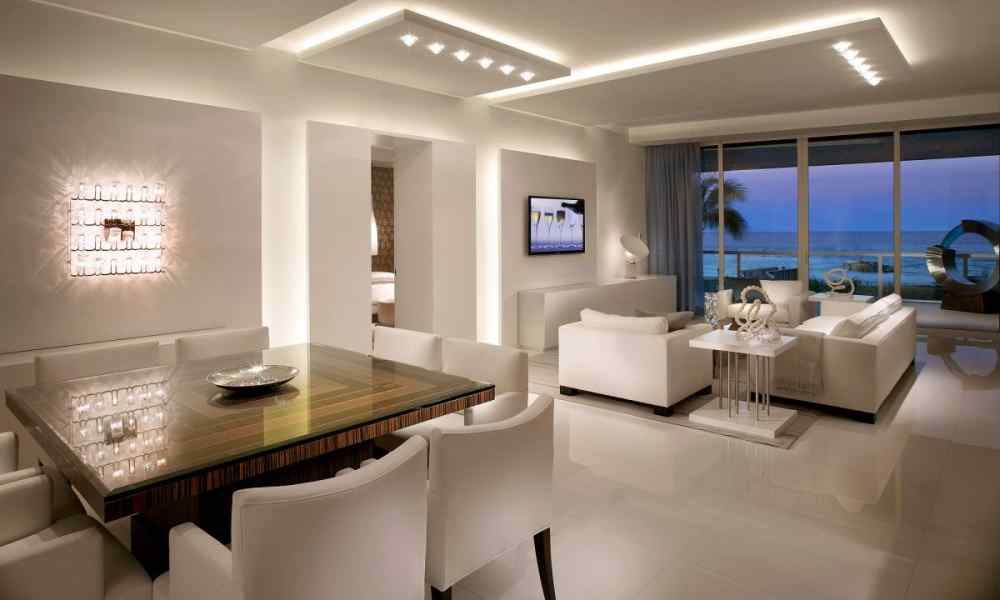 То же самое касается и других помещений. Можно подсветить место установки телевизора, камин, журнальный столик или что-то еще.