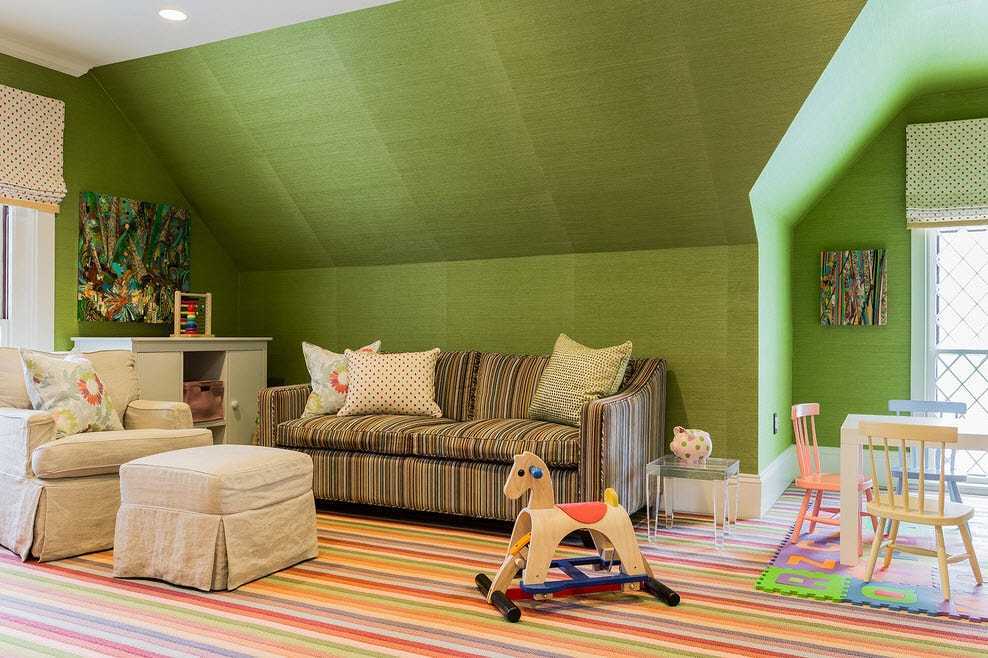 На фото пример натурального линолеума – прекрасное напольное покрытие, которое помимо практичности, привносит в интерьер детской комнаты яркие краски.