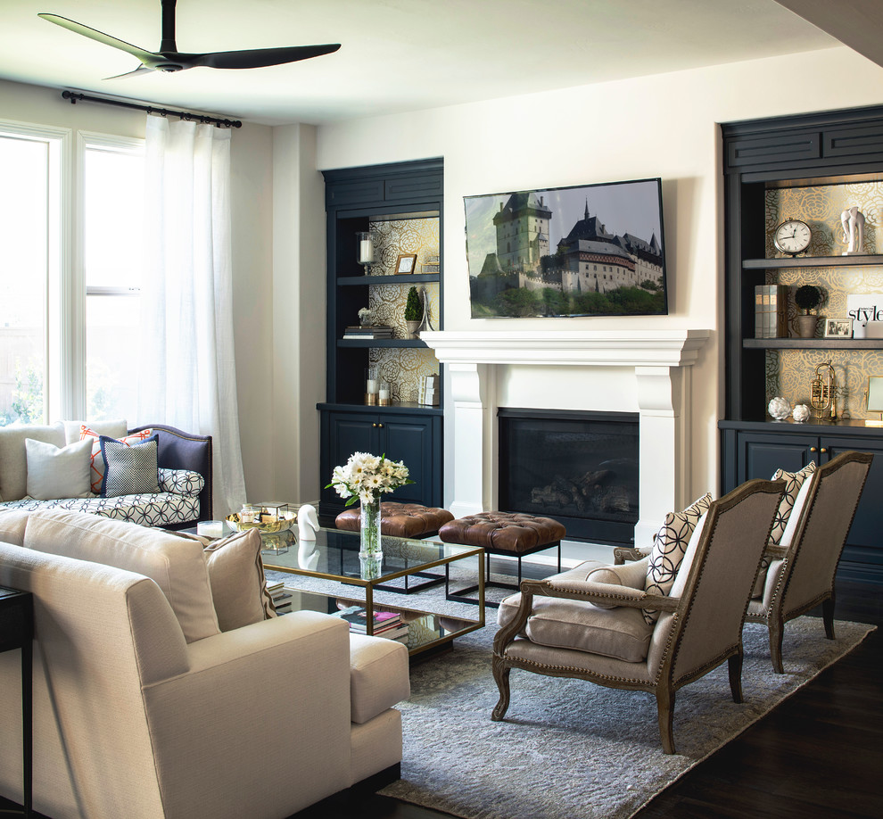 Телевизор и камин в интерьере гостиной: правильное размещение