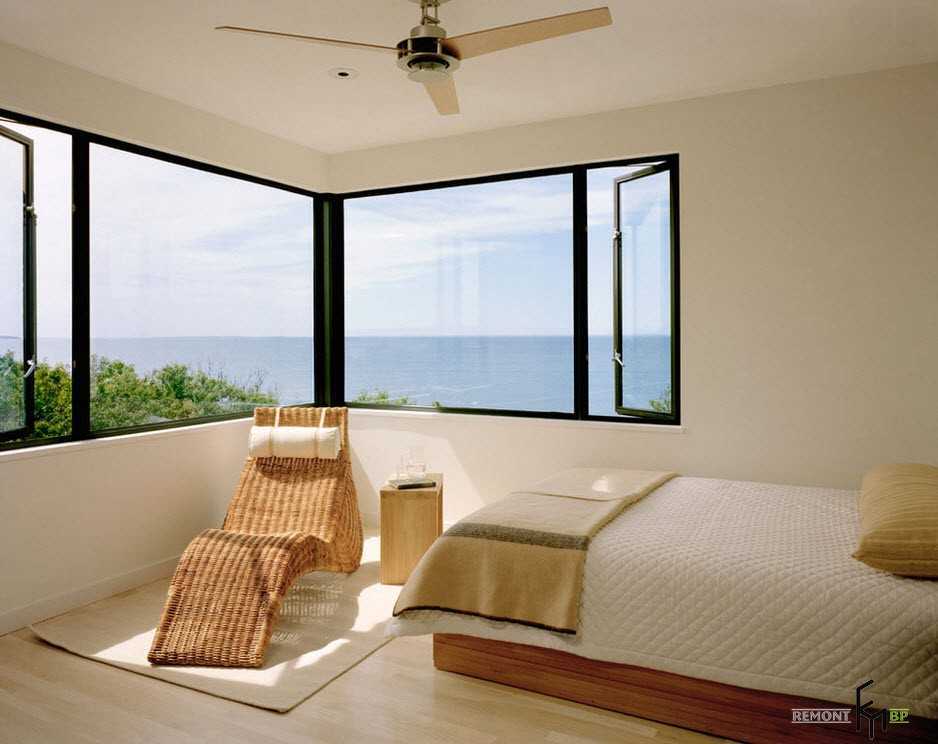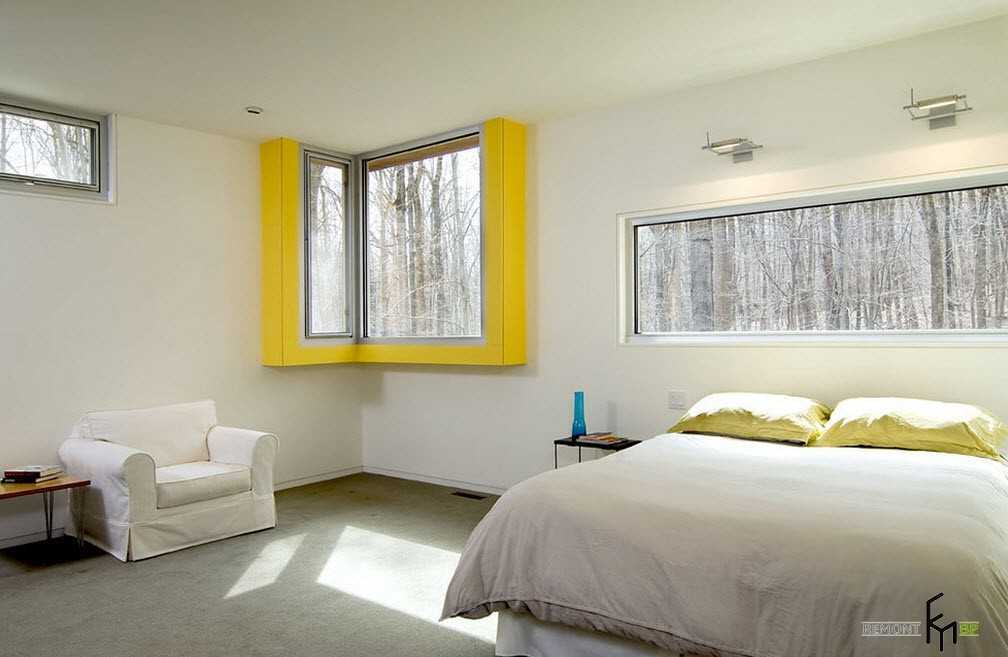 Как и в любом помещении, угловое окно в спальне наполнит комнату естественным светом, что позволит сэкономить на осветительных приборах. В спальне, интерьер которой выполнен в стиле минимализма, окно не нуждается в дополнительном декоре:
