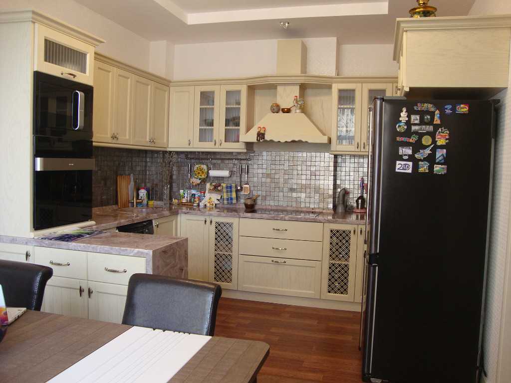 Материалы предпочтительны здесь из натурального дерева. Чаще всего это массивная мебель, поэтому маленькие кухни не рекомендуется оформлять в классическом стиле.
