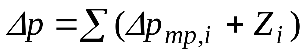 9. Определяют суммарные потери давления на каждом участке