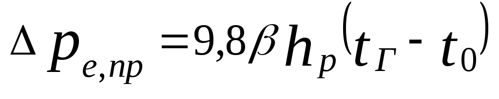 – естественное давление, возникающее при охлаждении воды в приборах, Па, можно определить как