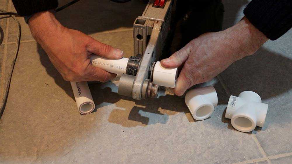 После того, как глубина соединения и соосность будут обозначены на элементах, и фитинг, и труба обезжириваются спиртом — и после этого приступают к сварке. В процессе проведения работ нужно в одной руке держать фитинг, а в другой — трубу. Трубу вставляют в гильзу, а фитинг надевают на дорн одновременно, после чего выдерживают элементы определенное время для прогрева. Время сварки также зависит от диаметра трубы — трубу диаметром 20 мм выдерживают для прогрева 6 секунд, 25 мм — 7 сек, а 32 мм — 8 сек.