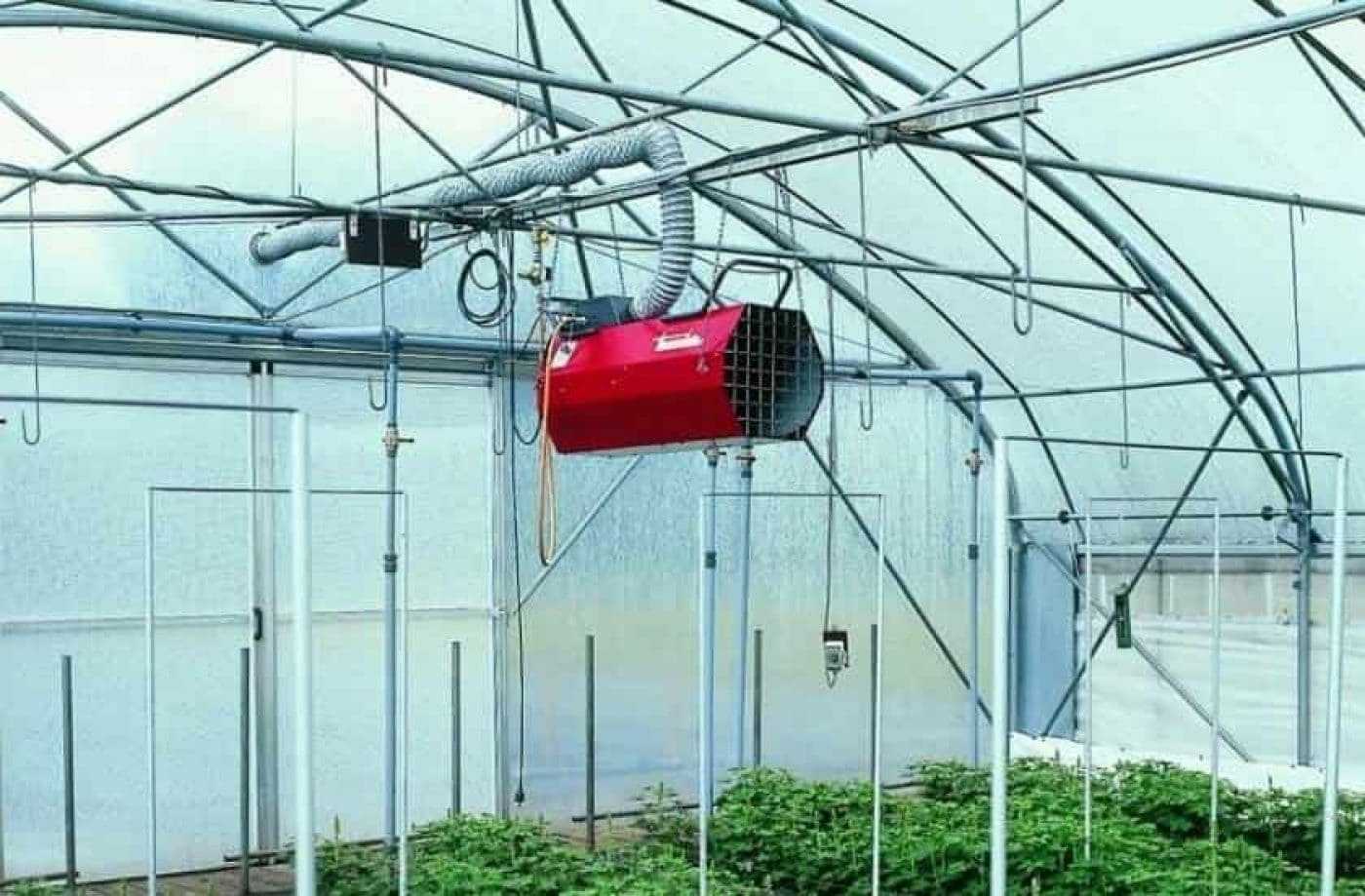 - Прогрев теплицы пушками, работающими на газу, является результативным способом, причем расход газа малозаметен. Обогревательное устройство занимает мало места, не требует отдельного монтажа, имеет несколько ступеней защиты, поэтому оно безопасно в применении.