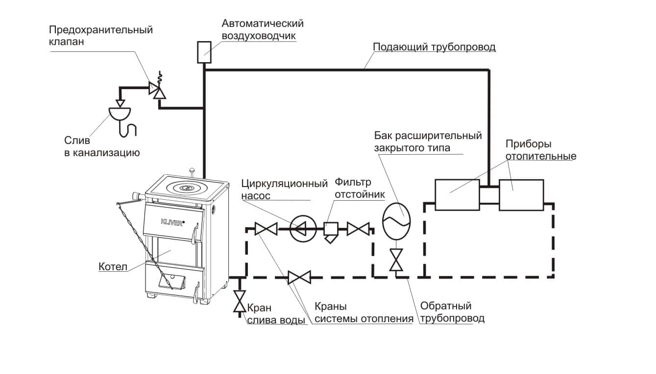 - закрытые мембранные устройства, применяемые исключительно в принудительных системах, устанавливаются на обратной магистрали перед котлом.