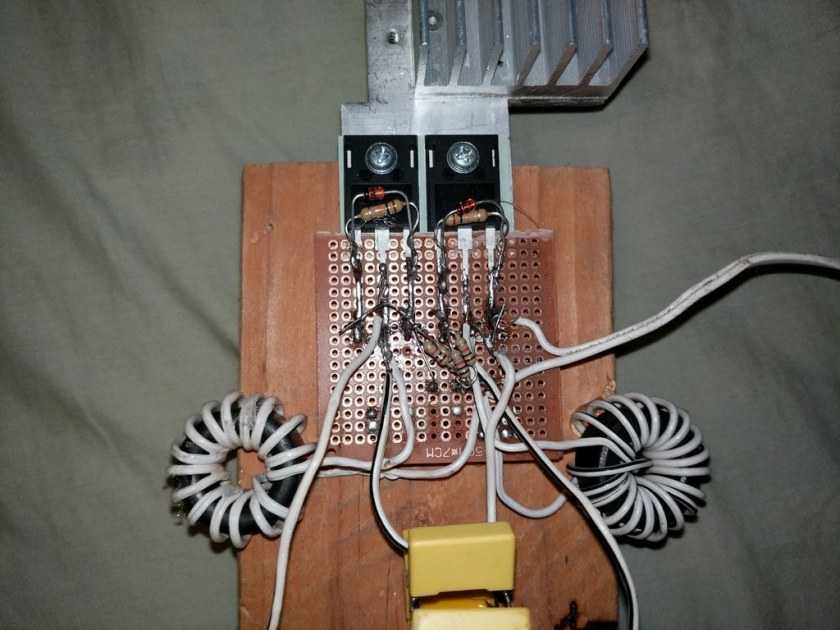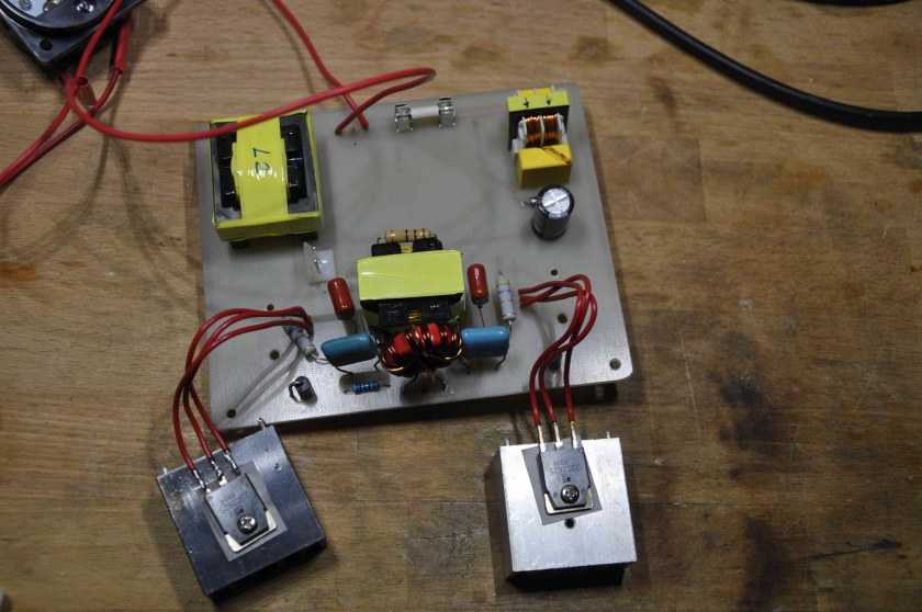 Оставалось самое главное: “Чем нагреть воду в трубе?”. “Порывшись в Интернете”, было выбрано несколько принципиальных схем преобразователей напряжения инверторного типа. Сначала выбор остановили на инверторе Кухтецкого, но отсутствие в наличии высоковольтных “мосфетов” в нашем творческом объединении и в моих “личных запасах” приостановило изготовление данного аппарата.