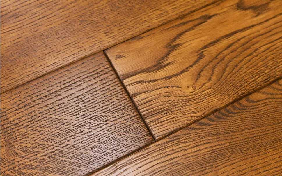 Дубовую древесину часто поддают брашированию. Кольца деревьев, образованные весной, менее прочные, чем те, что появились зимой или осенью. Браширование предполагает удаление с помощью жестких щеток более мягких древесных волокон. В результате получается более прочная и объемная поверхность.