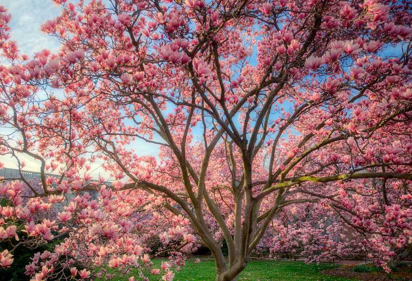 Кустарник неприхотливый, хорошо растет на солнце и в полутени, переносит известковые почвы, сухой и загрязненный воздух. В полной тени слабо плодоносит. - Магнолия. Этот многолетний кустарник отличается высокой декоративностью. Цветки бывают различного окраса: сиреневого, розового, белого, пурпурного, красного и кремового. В диаметре они достигают 35 см.