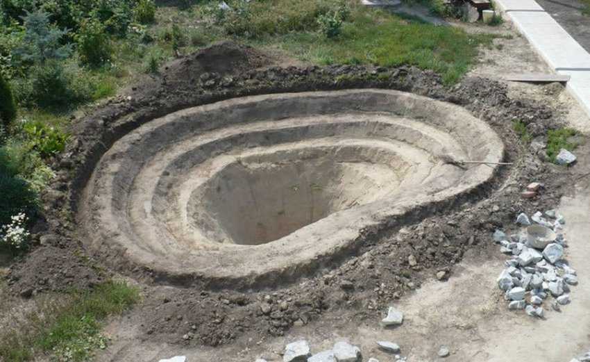 Для крупных водоемов подойдут старые ванны либо самостоятельно выкопанный котлован. Если используется ванна, необходимо вырыть яму такого размера, чтобы края ее не были выше поверхности земли. В ванне надежно заделываются все отверстия, после чего она опускается в котлован и укрепляется землей, камнями и песком.