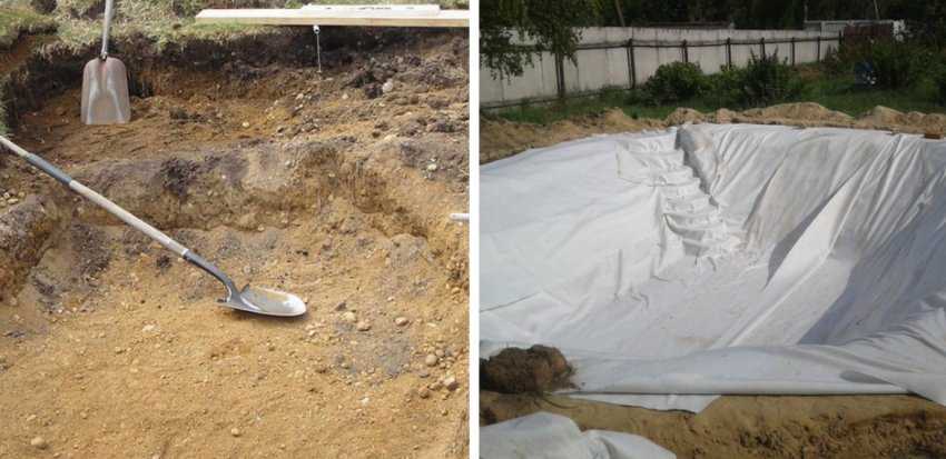 На это покрытие уже устанавливают готовые чаши, либо покрывают пленкой. Края такого полотна должны выступать за пределы чаши не ориентировочно на полметра.