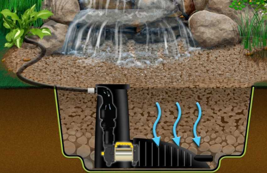 Второй по важности момент при строительстве водопада своими руками на даче – выбор насоса. Его мощность рассчитывают исходя из следующих соображений