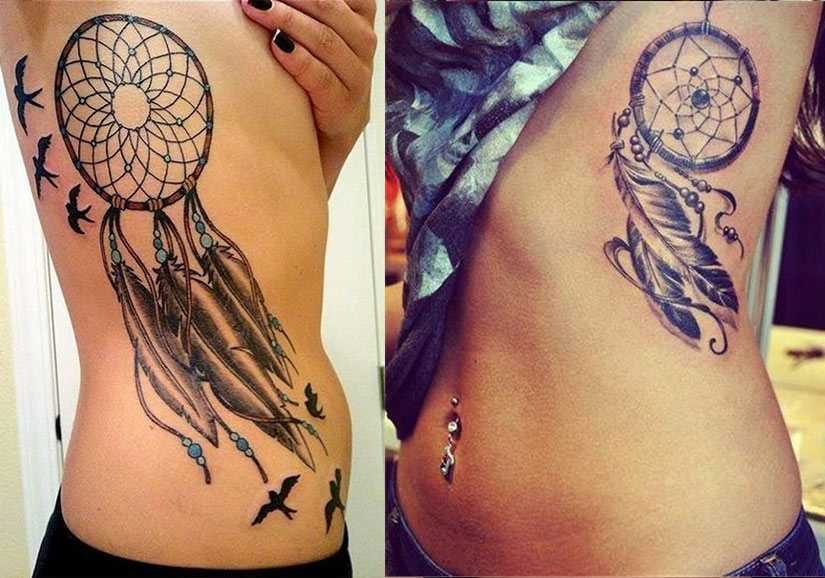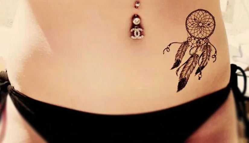 Тату ловец снов на животе