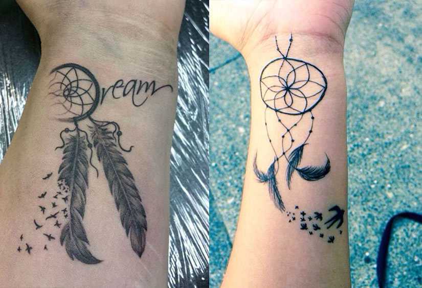 Девушки часто заказывают такую татуировку на запястье, или предплечье. Эти два варианта давно стали классикой. Хотя если вы изображаете тату ловец снов на руке, это не совсем правильно в плане взаимодействия символа с энергоинформационными потоками. Если вы хотите, чтобы рисунок работал, защищая вас от кошмаров и негативных мыслей, лучше делать татуировку на плече, или на шее. Помните, что ни один сакральный символ не работает, если вы в него не верите, и не понимаете принцип его действия, взаимодействия с реальностью.