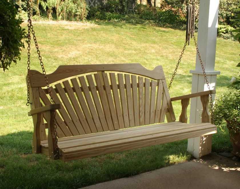 Чаще всего качели для дачи изготавливаются из привычных для таких конструкций материалов — дерева или металла. Но иногда можно использовать оба материала, что положительным образом отразится на эстетических свойствах изделия и его прочности. А чтобы дачные качели стали настоящей гордостью владельца, их можно украсить коваными элементами.