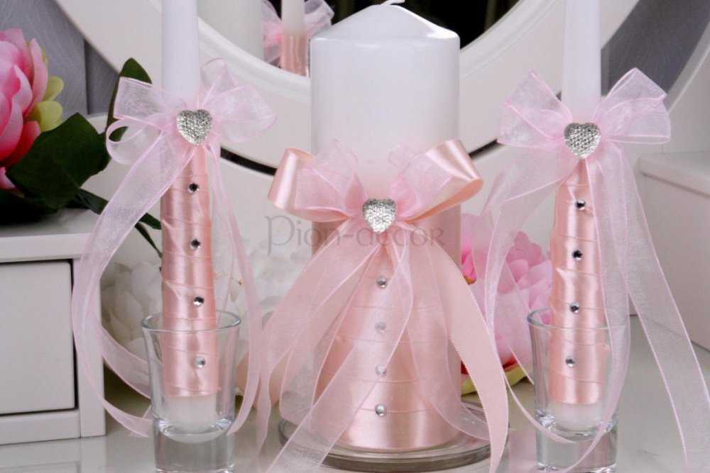 Интереснее, сложнее и более разнообразны способы декорирования свечей для зажигания семейного очага. Наиболее чаще используют ленту, стразы, кружево, бусинки и другие аксессуары.