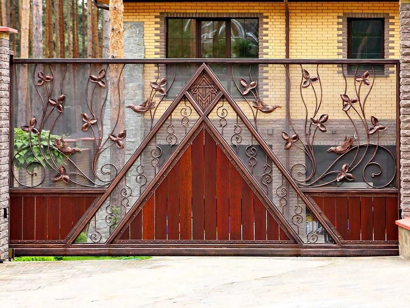 - Ренессанс. Калитки и ворота должны содержать орнамент. Развитие узора начинается с центра. Главным элементом рисунка являются спиралевидные завитки, созданные из прутков круглого сечения, которые пересекаются друг с другом. Художественная ковка кажется невесомой.