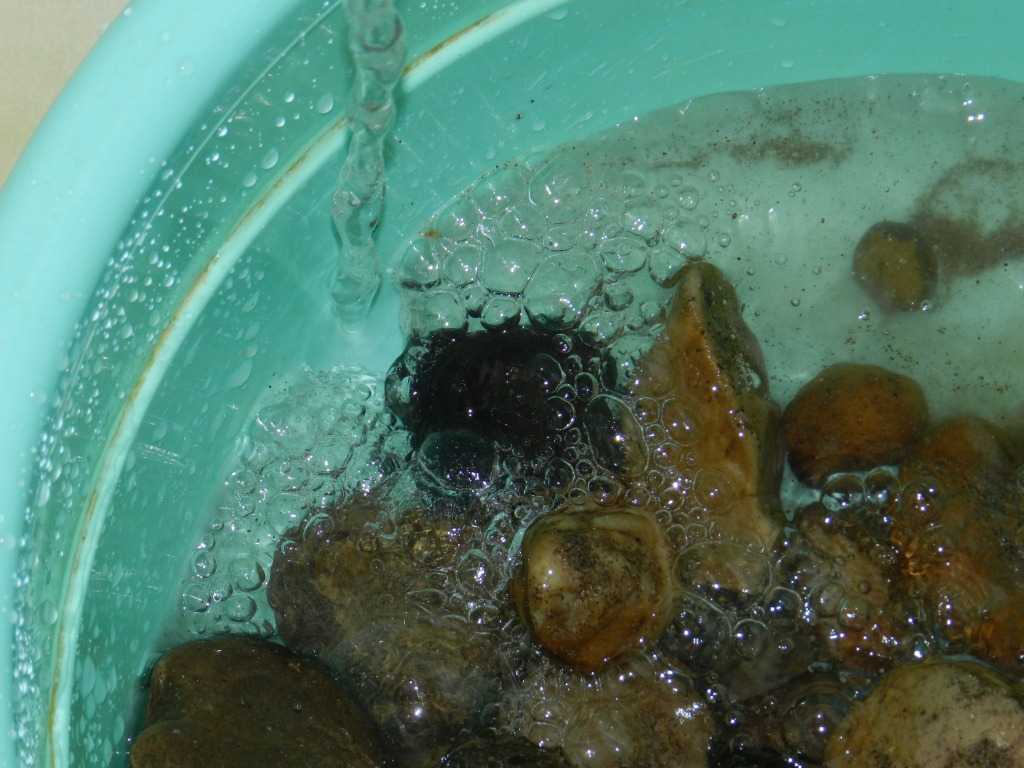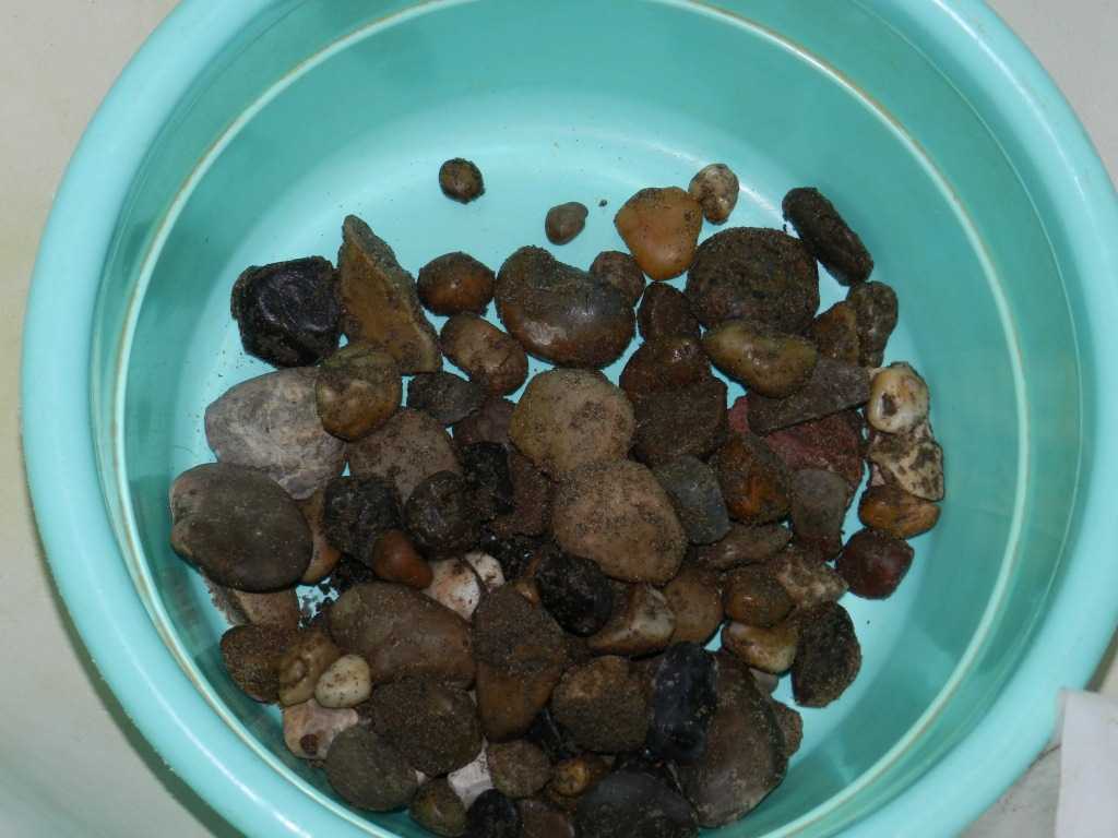 Итак, камни собраны. Теперь необходимо их очистить от песка и грязи. Можно даже замочить на несколько часов в растворе марганцовки или мыла, затем тщательно промыть их под проточной водой. Чистые камни выкладываем на полотенце, чтобы убрать лишнюю влагу, а после оставляем на сухой поверхности на сутки для просушки.