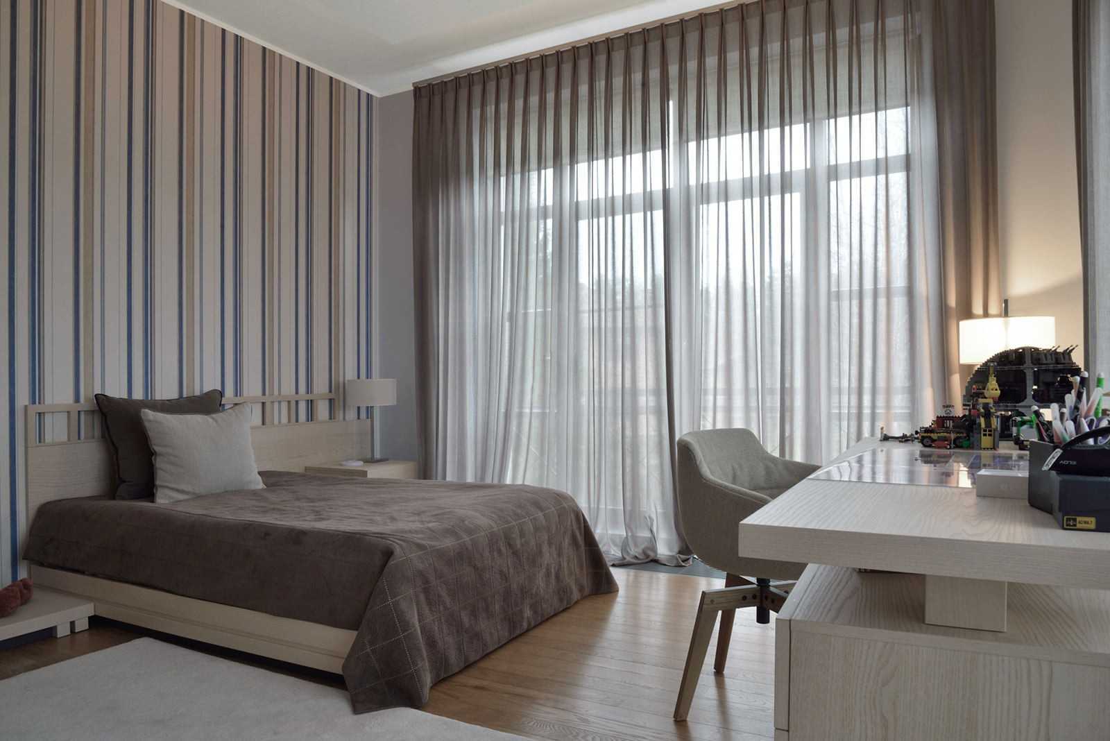Шторы, идущие от потолка до пола также увеличивают высоту помещения