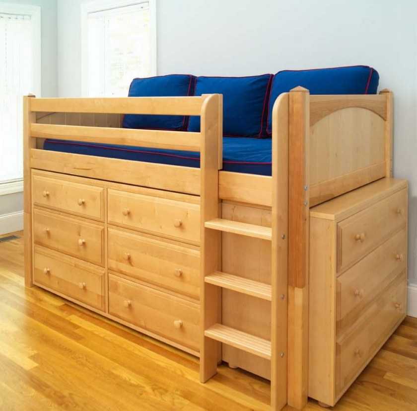 - Для моделей двухъярусных и чердачных кроватей обязательно должна быть прочная лестница (и лучший вариант – сделать лестницу с поручнями).