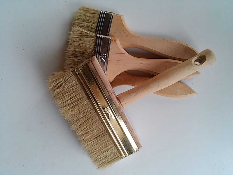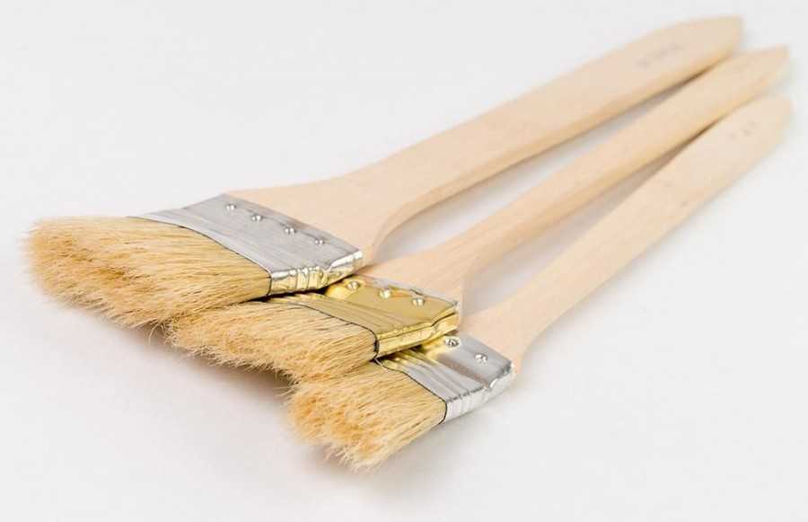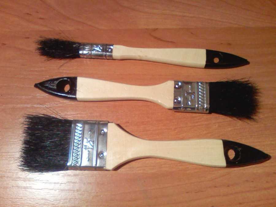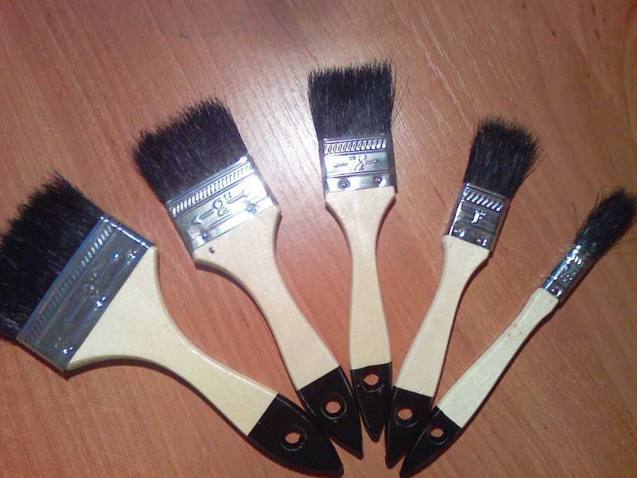 С появлением валиков кисти уступили свое место. Но и сегодня широко используются плоские экземпляры, имеющие ширину 3-7 см. Применяются и другие размеры и формы кистей. Главное качество для этих инструментов — прочное крепление ворса, щетины.