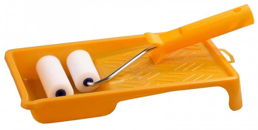Разбавляя краску в лотке, можно контролировать расход материалов и цвет (добавляя различные колеры). Данный набор содержит необходимые приспособления, предназначенные для покраски стен, плинтусов, откосов и прочего. Валик поможет наносить большое количество краски на поверхность и контролировать толщину нанесенного слоя. Кисть необходима, когда нужно аккуратно закрасить труднодоступные места.