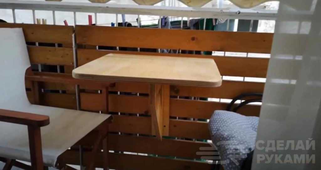 Как сделать простой складной столик для установки на балконе, смотрите в видеоролике ниже.