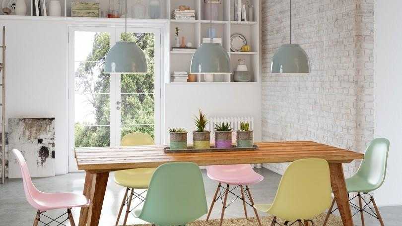 Чтобы придать индивидуальность вашей столовой, выберите необычный стиль, расставив вокруг стола разные стулья. Спинка, сиденье, изгибы… Полностью меняйте стили! Такое сочетание жанров позволит вам наполнить комнату энергией.