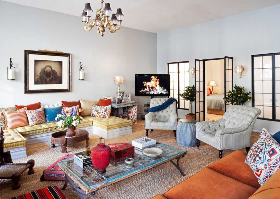 - В светлой гостиной будут уместны яркие акценты в виде декора и некоторых видов мебели.
