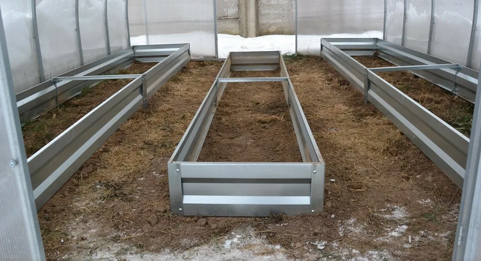 Садовые грядки из стали с цинковым покрытием представляют собой сборные короба, различающиеся по высоте, длине и ширине. Возможны различные варианты высоты бортиков: 15, 17, 19, 22, 24, 36 см. Выбор зависит от типа грядки (обычная, теплая, приподнятая, многоярусная), выращиваемой культуры и типа почвы (к примеру, на тяжелых переувлажненных почвах потребуется создание мощного дренажного слоя).