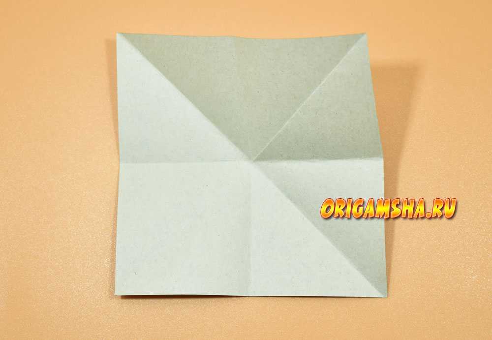 На площади бумаги останутся 4 пересекающиеся в центре складки-сгибы.