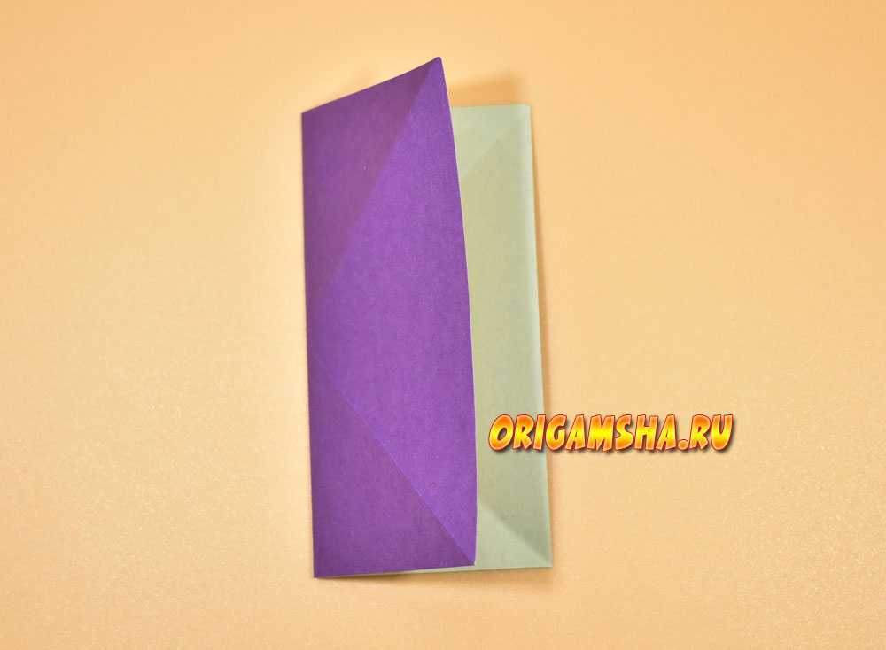Снова сложите вдвое, а затем загните к центру правую боковую сторону.