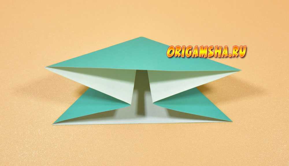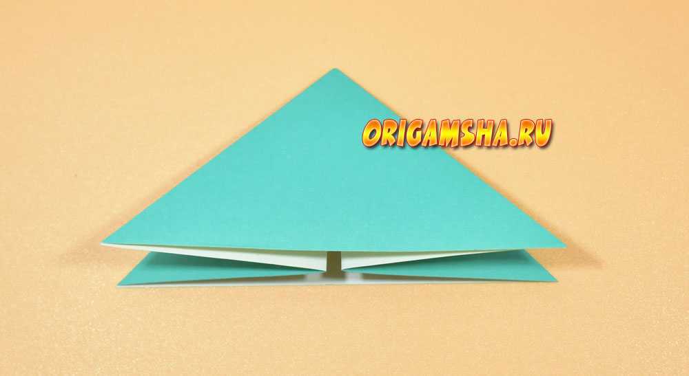 Получилась форма оригами «двойной треугольник». Она является основой очень многих оригами. Это начало складывания тюльпана, лягушки, елочки, оригами краба.