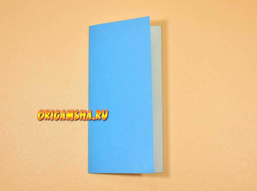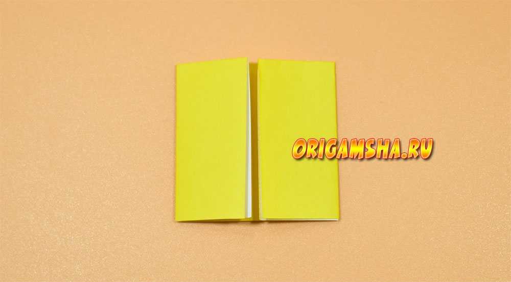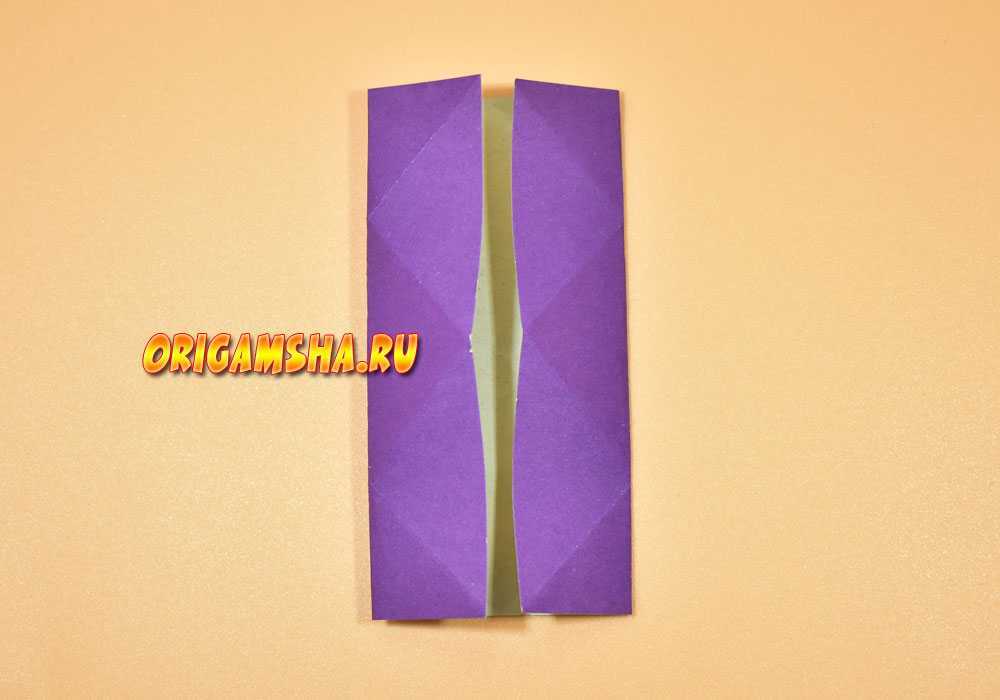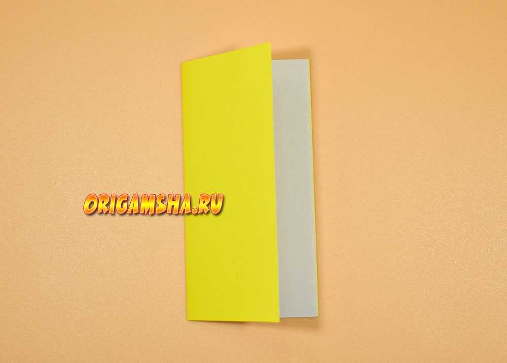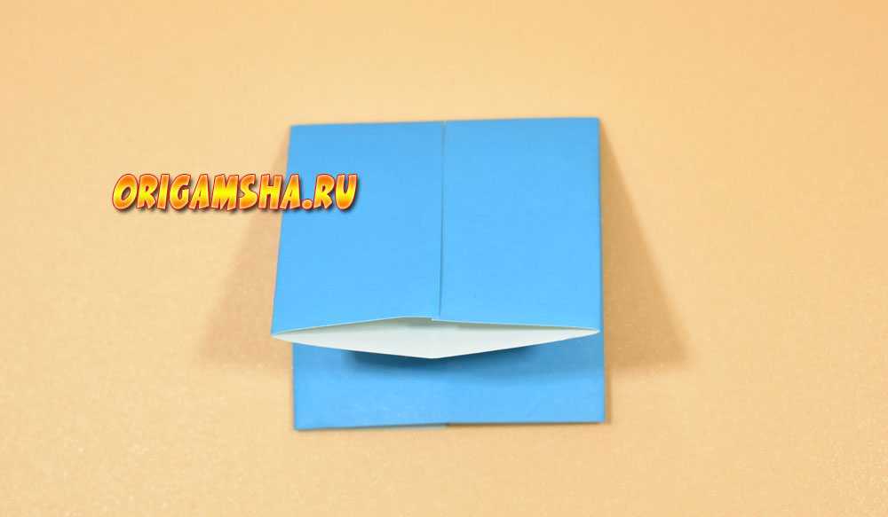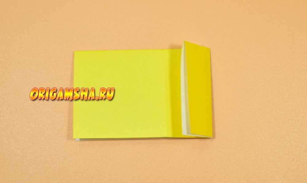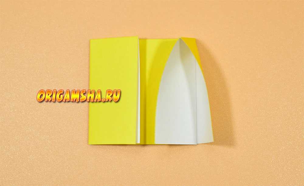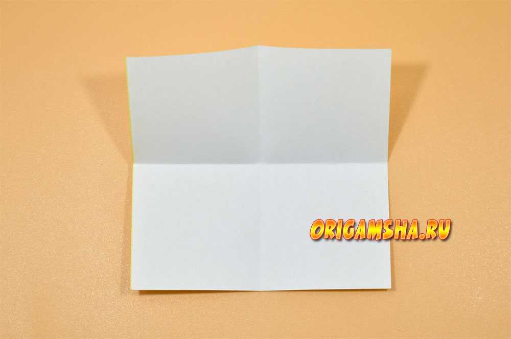 Раскройте бумагу и сделайте оригами форму «дверь». То есть, согните внутрь к центру боковые стороны.