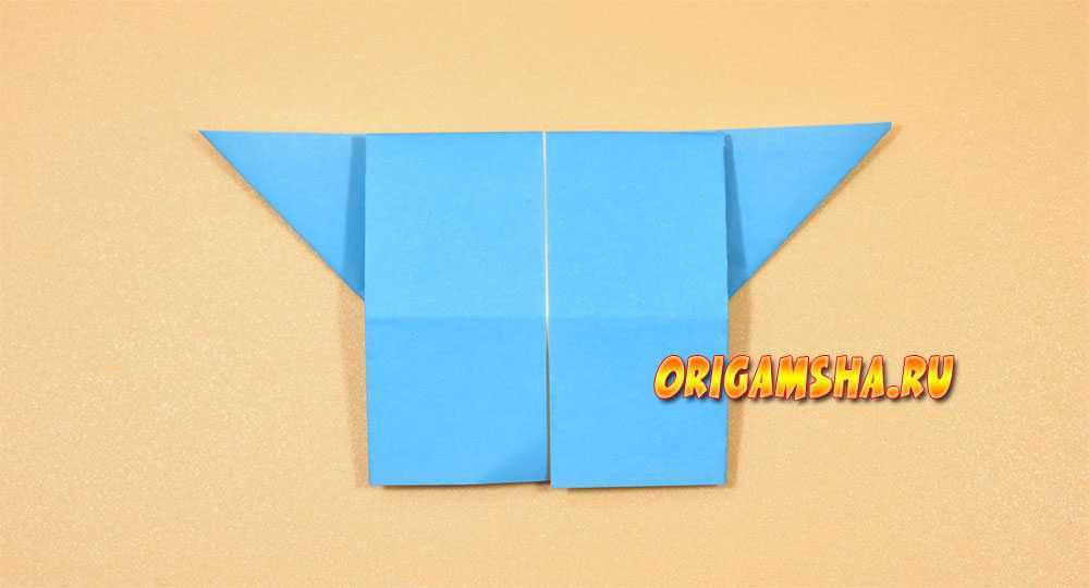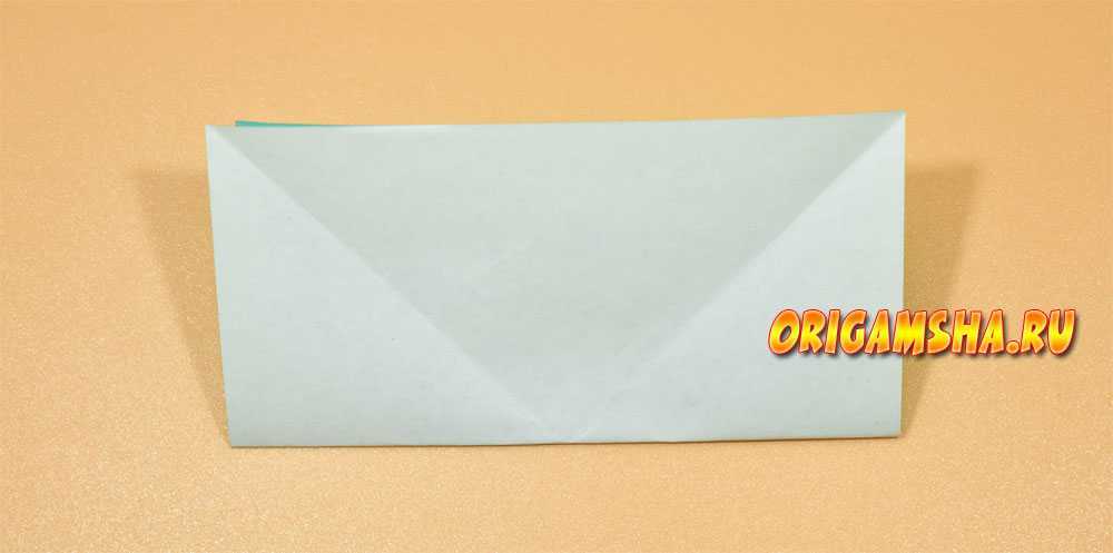 Затем сгибаем нижние углы прямоугольника вверх.