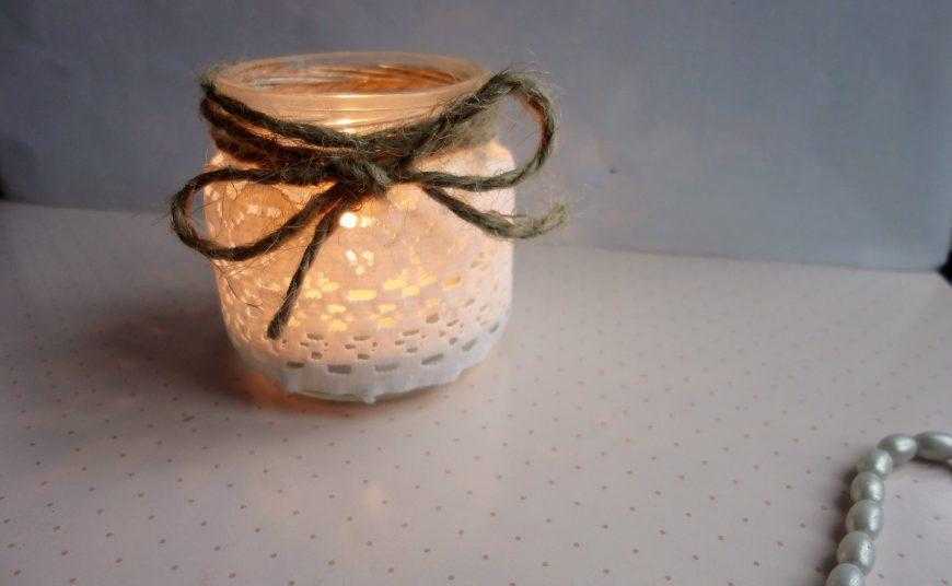 Стеклянная посуда, например, один оставшийся бокал из набора, может использоваться для изготовления оригинальной поделки. Кроме стильного блеска и интересной формы, стекло обладает устойчивостью к огню.