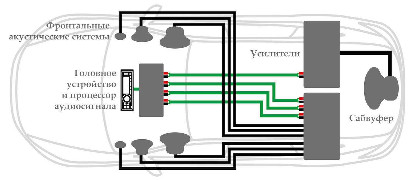Покупка в автомобиль новых аудиокомпонентов – это лишь первый шаг на пути к построению идеального автозвука. Даже если головное устройство и подключенная к нему акустика будет из топ-сегмента, для достижения по-настоящему эффектного звука потребуется тщательная и грамотная настройка системы. Все электрические схемы звукового тракта можно условно разделить на два вида: — обычные системы, состоящие из магнитолы и подключенных акустических систем