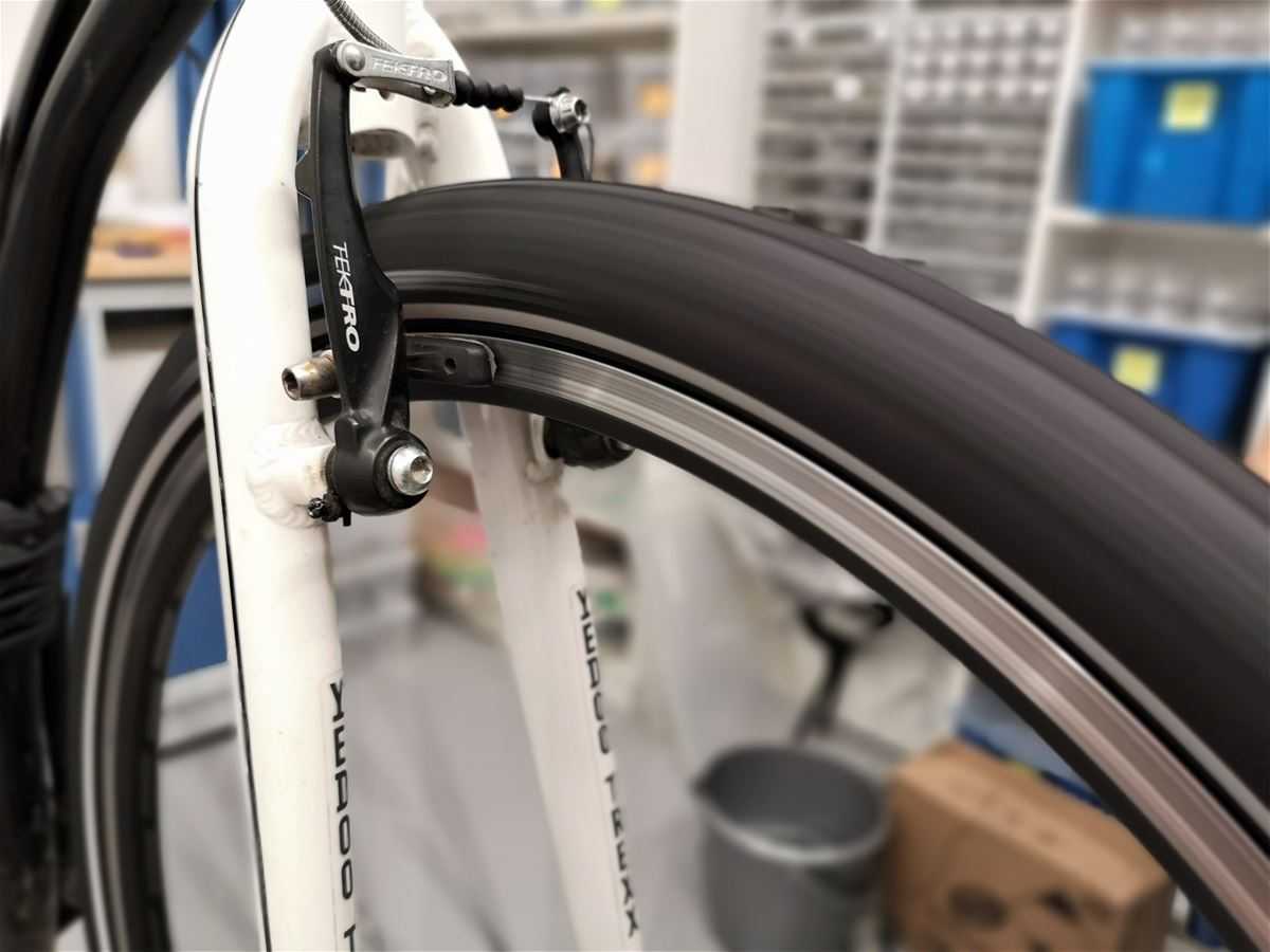 При затяжке следите за тем, чтобы колеса сидели в вилке ровно посередине, чтобы они при вращении не отклонялись из стороны в сторону или на высоту более 1 мм. Так называемое «биение» колеса лучше всего обнаружить, если смотреть на вращающееся колесо в месте тормозных колодок.