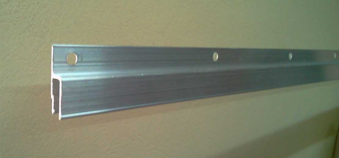 При небольшом весе этот багет обладает большой прочностью и жесткостью, поэтому обеспечивает ровность несущего каркаса даже при установке на неровные основания. Такие детали имеют штапиковые или гарпунные замки. Саморезы в них вкручиваются с шагом 15-30 см. Причем минимальный шаг установки крепежей используют при монтаже полотна, которое нуждается в сильном натяжении, и при установке на значительной площади.