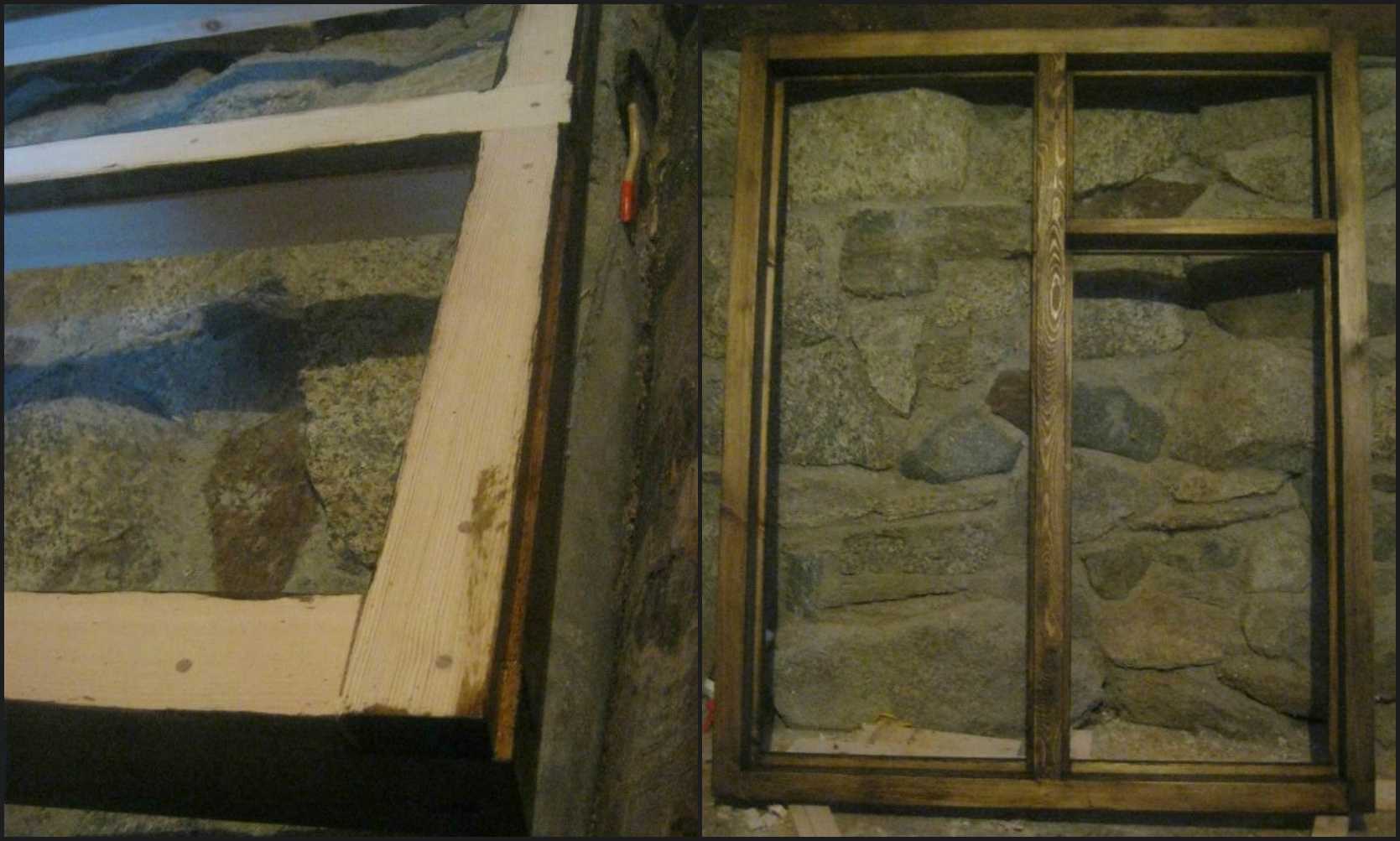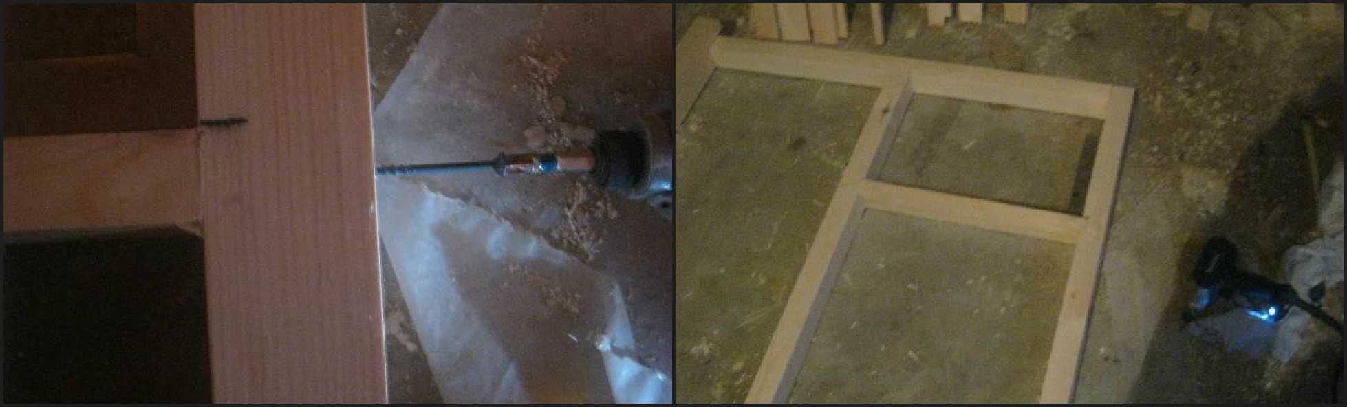 Сначала доводим последний штрих, относящийся к первому слою рамы. Устанавливаем брусок, который будет отгораживать форточку от нижней створки. Делаем ее из планки 30 мм шириной. Крепим ее так же на клей и саморезы, не забывая выдерживать прямые углы всей конструкции.