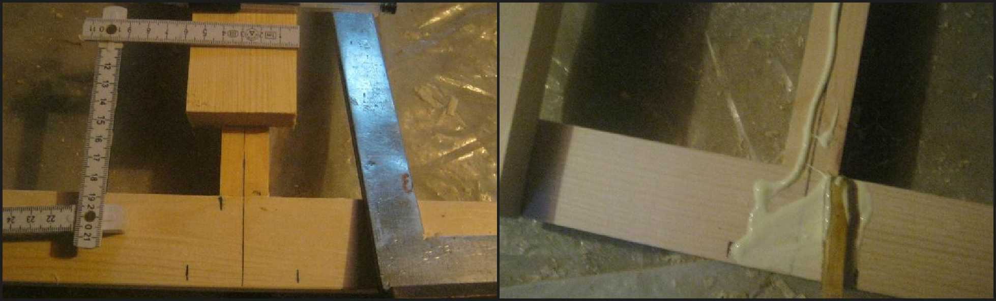 После того как все детали будут готовы, можно приступать к сборке. Сначала выполняют сухую сборку (без клея). При необходимости выполняют подгонку, а затем склеивают. Дополнительно, для усиления крепления, можно на углах рамы и форточке прикрутить уголки. Форточку навешивают на петли. После этого можно приступать к пропитке и покраске окна.