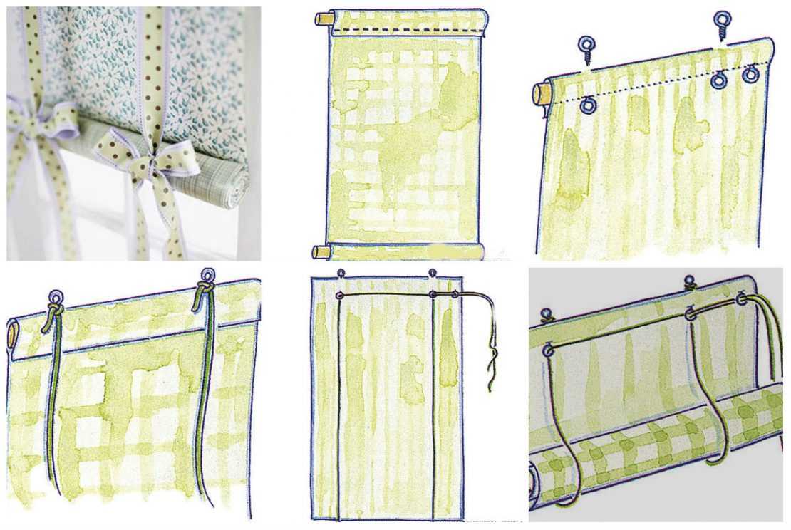 Чтобы дать ответ на вопрос, как сделать ролеты на окна своими руками, стоит рассмотреть вариант описанной выше конструкции только без свага. Для этого сквозные отверстия делаем не по центру, а на некотором расстоянии с каждой стороны от края полотна. Поскольку в таком случае получится две дырки, нужны две отдельные веревки или одна более длинная.