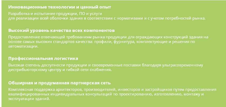 Масштабы производства дают возможность непрерывно внедрять новые идеи и технологии, благодаря которым оконные профили Schuco, и ПВХ, и алюминиевые, являются отличным примером удачного соотношения цены и качества. По этим же причинам компания предлагает внушительный ассортимент, способный удовлетворить как владельца однокомнатной квартиры со средним доходом, так и владельца офисного здания, с соответствующими потребностями и возможностями.
