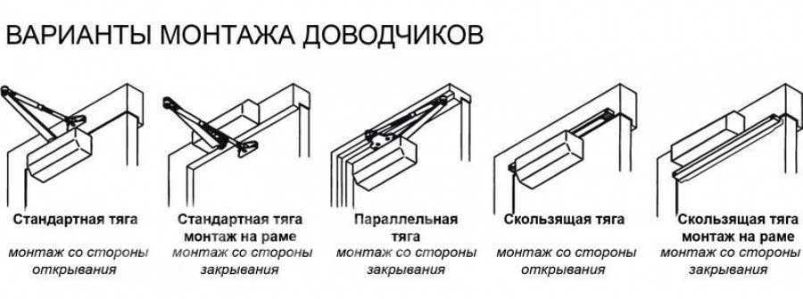 Различия в способе монтажа определили классификацию доводчиков, делятся которые на: