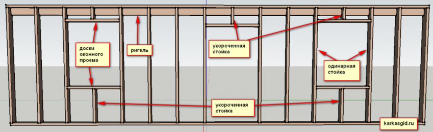 В финских каркасных домах устанавливаются одинарные стойки для окон. Особый элемент каркасного дома — ригель позволит оптимально распределять вес конструкции.